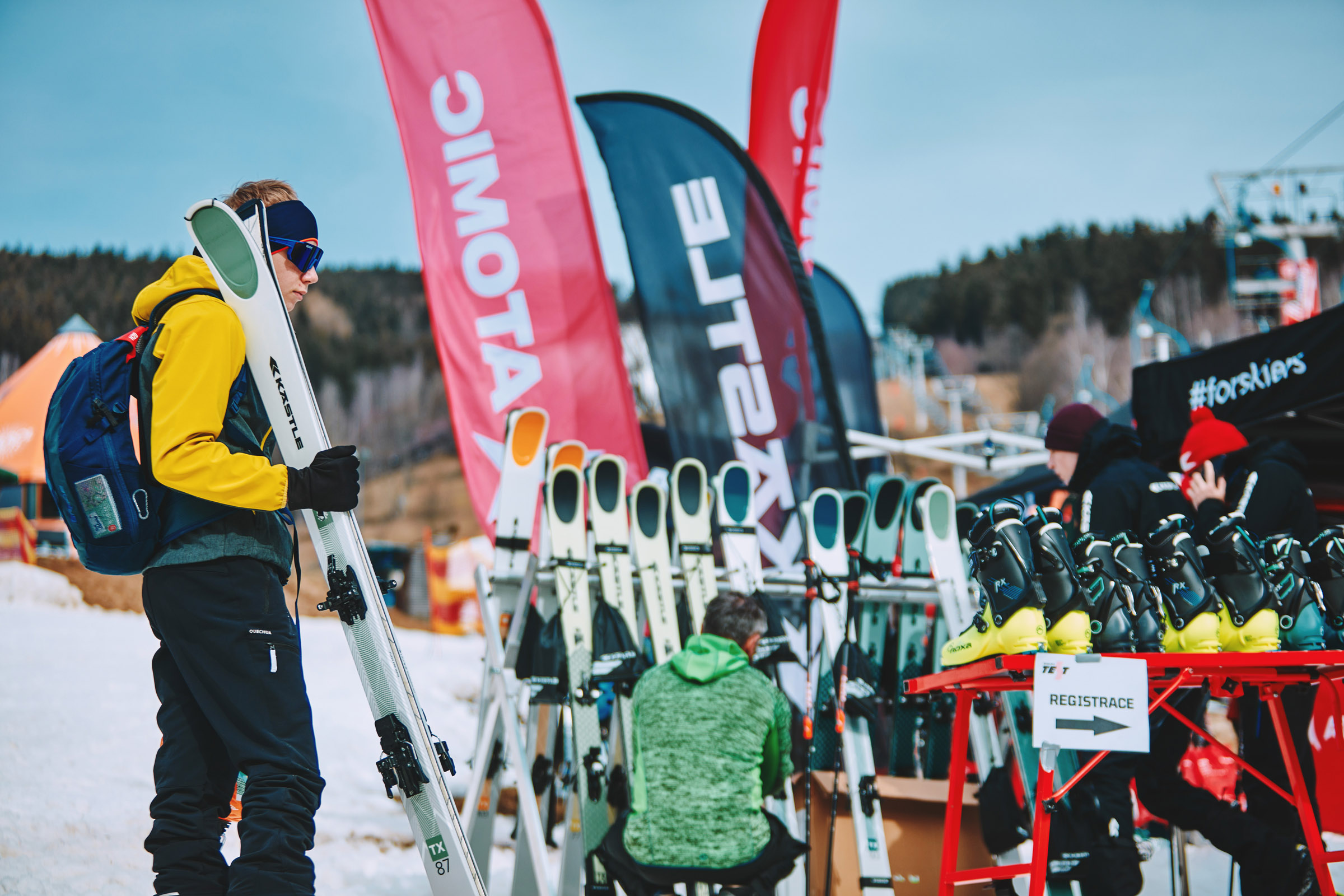 Když to nevyšlo v lednu, povedlo se v polovině března. V sobotu 18. března jsme na Portáškách ve Velké Úpě uspořádali historicky první SkialpujTEST. Největší veřejný test skialpových lyží. V testovacím depu se nám sešlo více než 130 párů skialpových lyží,  přes 60 páru skialpových bot od většiny předních lyžařských značek.